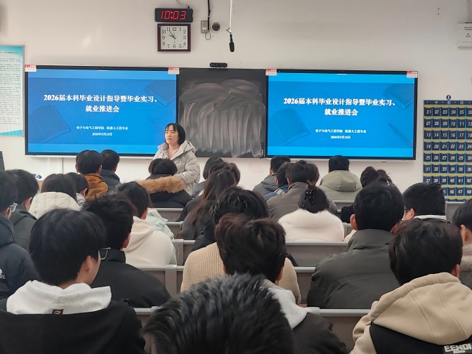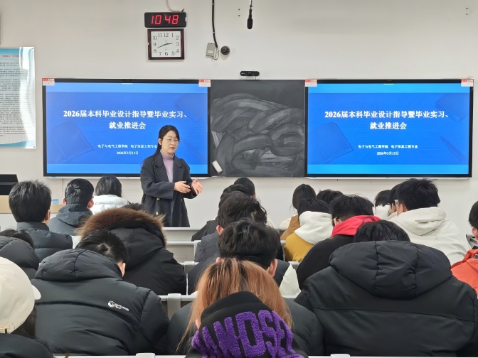 为扎实推进2026届本科人才培养收尾工作,保障毕业设计质量、规范毕业实习管理、助力毕业生高质量就业,3月13日,电子与电气工程学院分专业于G203、G204、G303、G304教室召开2026届本科毕业设计指导暨毕业实习、就业推进会。学院党委书记哈焱、院长王艳春、党委副书记马程、副院长薛大为、各专业负责人、2026届全体毕业班辅导员及毕业设计指导教师、2026届毕业生参会。