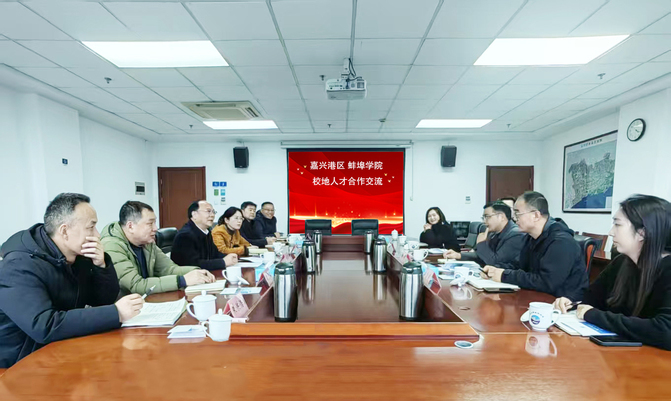 座谈中,陈国龙对屠群贤的热情接待表示感谢,并简要介绍学校概况。蚌埠学院是一所以工为主,多学科协调发展的省属普通本科高校。开设60个本科专业,“以工为主”的专业结构特色鲜明。坚持以服务产业为导向,持续推进专业链、人才链、创新链和产业链的有机衔接与深度融合。坚持“学生中心、产出导向、持续改进”理念,持续深化人才培养模式改革。希望蚌埠学院的“人才活水”能够注入嘉兴这片发展的“热土”,双方以人才对接为桥梁,开启一场 “共同培养、协同发展” 的深度合作。屠群贤表示,嘉兴是一座“因水而兴、向海图强”的活力之城、创新之城、宜居之城。民营经济活力强劲、规模庞大、根基深厚,所构建的“先进制造为基、新兴集群引领、创新活力澎湃”的现代产业体系,与蚌埠学院“以工为主”的专业特色形成了高度的战略契合与天然的供需互补。期待更多蚌埠学院的学子能够了解嘉兴、加入嘉兴,为嘉兴市经济社会发展注入强劲动力。
