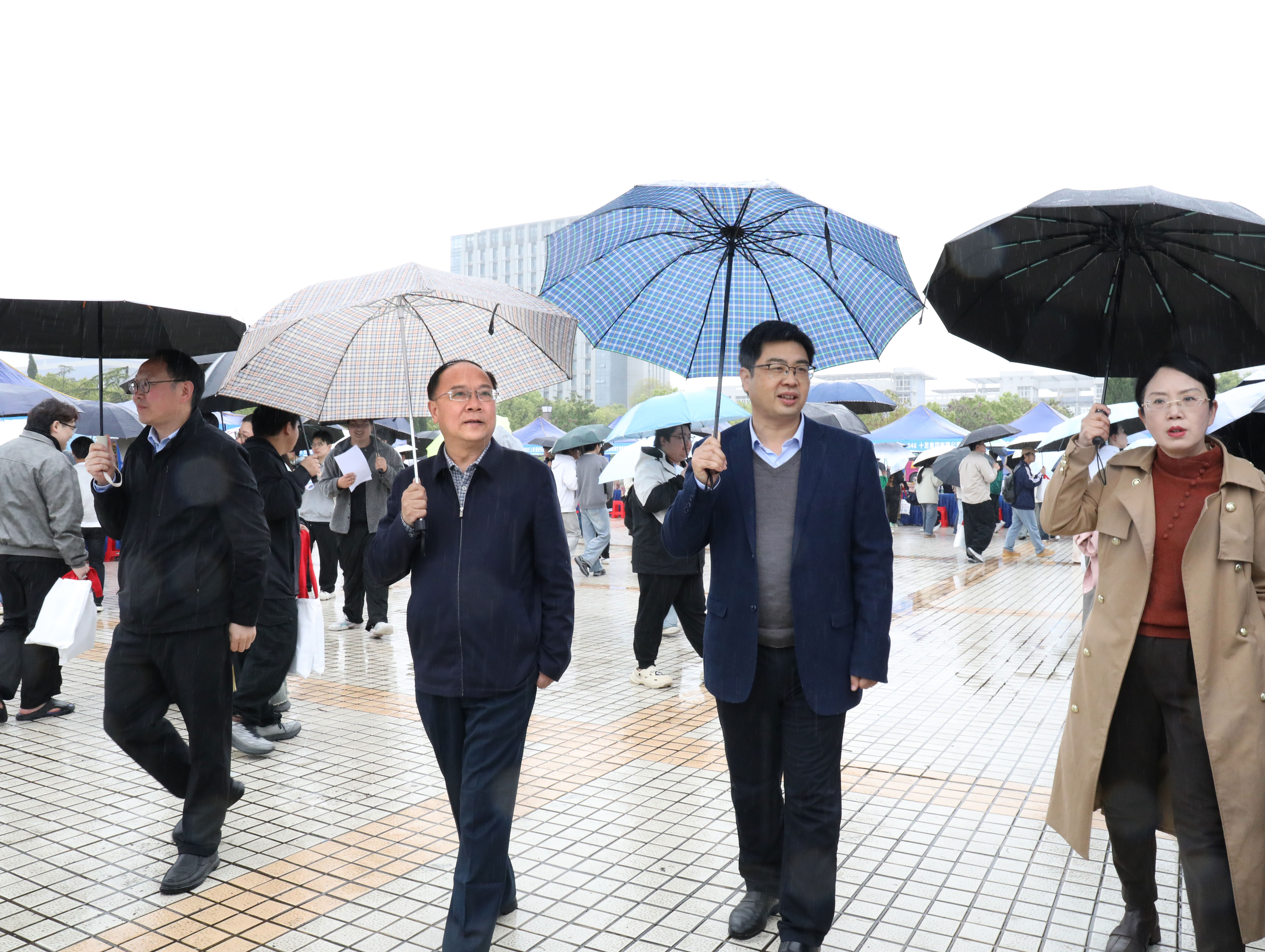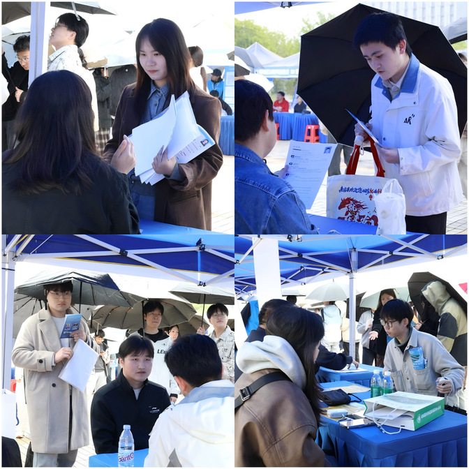 天空虽然飘着小雨,但丝毫没有影响大家的热情。来自省内外的用人单位如约而至,带来数千个优质岗位,涵盖制造、教育、金融、信息技术、生物医药、文化传媒等多个行业领域。下午2:30,双选会准时开场,现场人头攒动,毕业生们手持精心准备的简历穿梭于各展位之间。不少展位前排起了长队,同学们围绕岗位要求、发展路径、薪资待遇等话题踊跃提问,用人单位HR们耐心解答、频频点头。有同学笑着说:“今天不是‘海投’,是‘精准出击’!”
